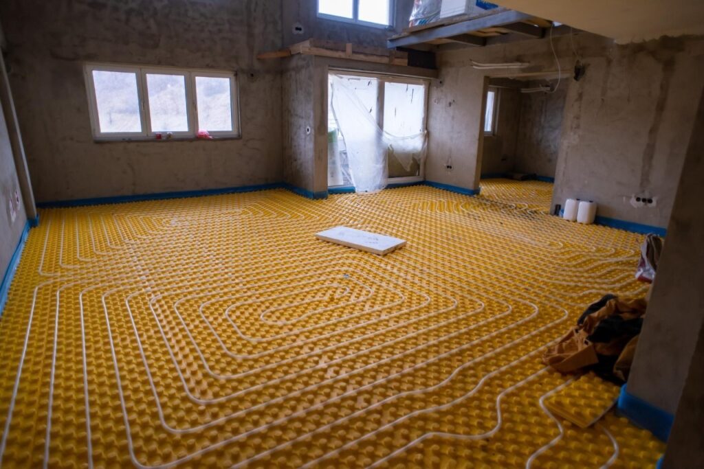 A layer of underfloor insulation boards sits beneath the surface. It slows the movement of heat. Not completely, but enough to make a real difference.